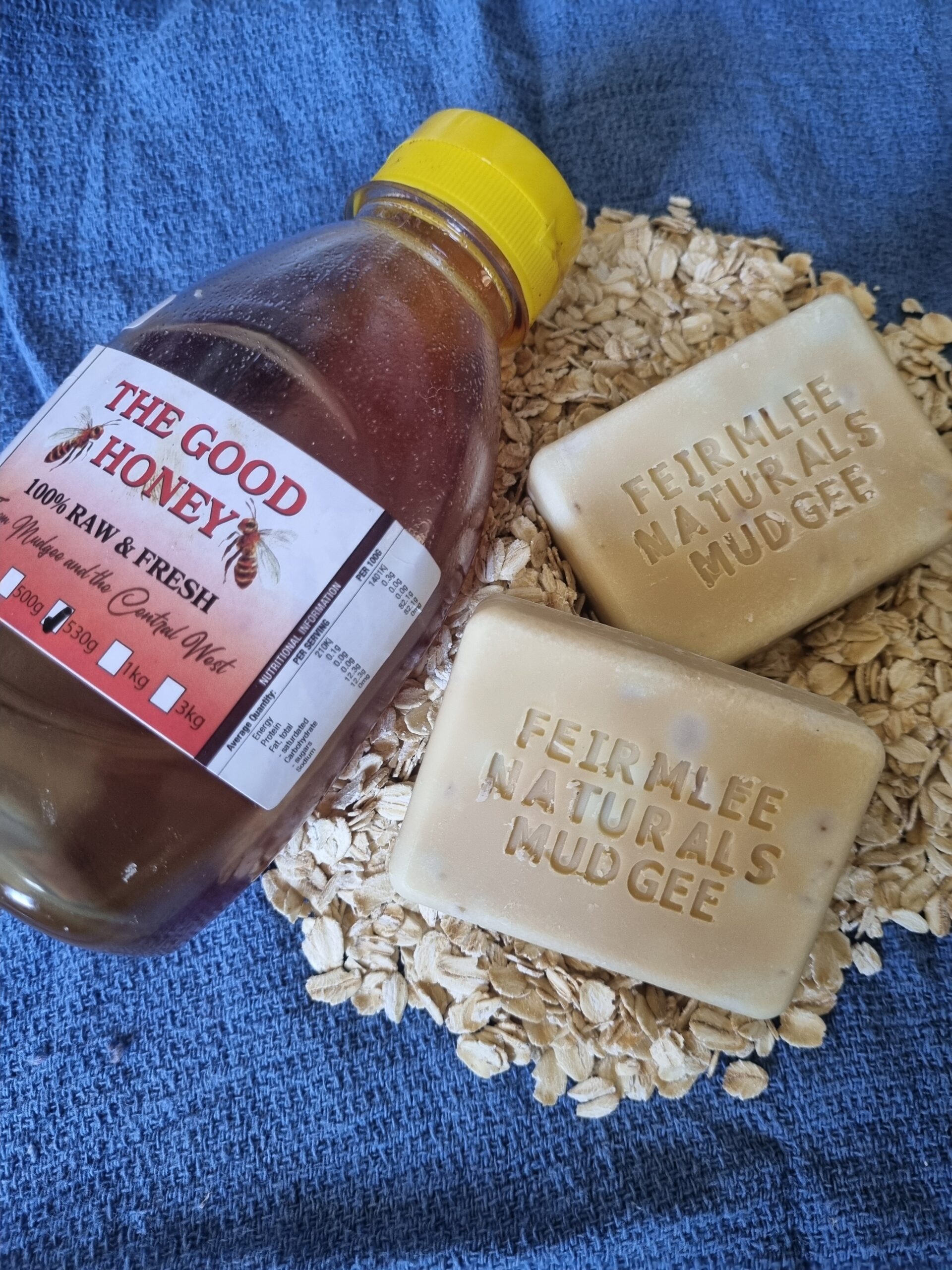 All standard Feirmlee Natural Mudgee soap varieties can be ordered as Slabs or in Giftboxes